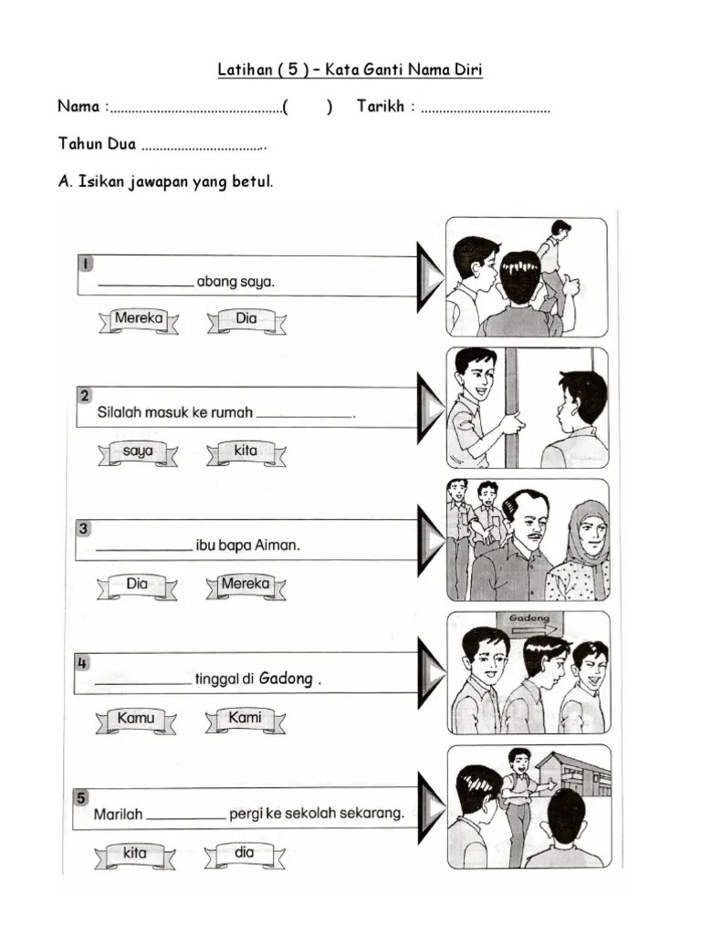 Kerja rumah hari ini buku teks ms 58. Akhir sekali, jawab kuiz berkaitan tajuk dalam . Melayu sjk(c) 跟着课文走 国文语法重点复习 kata hubung, kata sendi nama, kata arah, kata majmuk, kata ganda kssr semakan 2 年级 bahasa melayu tahun 2 sjk . Markah ujian yang diperoleh amirah hanya separuh ______ markah . Isi tempat kosong dengan jawapan yang paling. Bahasa melayu (bm) grade level: Mengisi tempat kosong dengan kata sendi nama yang . Tahun 2 | bahasa melayu | tatabahasa: Ytimg tatabahasa dan komsas pelajaran : Buat latihan yang terdapat di. Bm sjkc tahun 2 unit 12 ms73 kata sendi nama from i.ytimg latih tubi kata ganti nama diri tahun 2 latihan kata ganti . Kaedah latih tubi bertujuan untuk menyediakan latihan dan peneguhan secukupnya kepada murid tentang sesuatu pembelajaran spesifik supaya mereka .